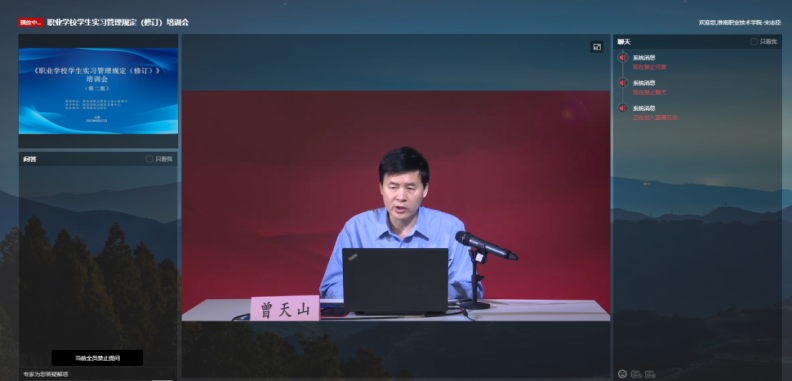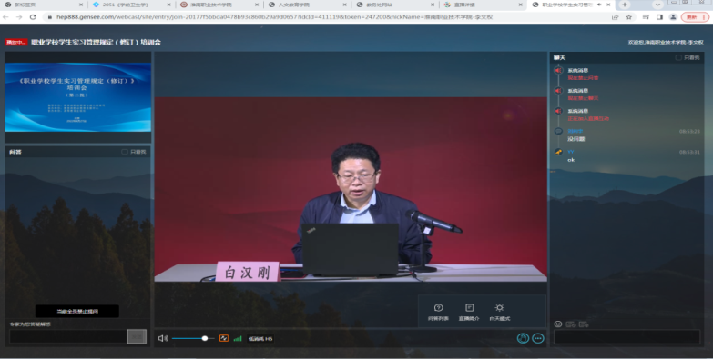 2022年4月27日上午9:00-12:00,根据省教育厅《关于组织参加<职业学校学生实习管理规定(修订)>专题培训的通知》要求,人文教育学院10名教师在线上参加了此次培训会。此次培训会由学校教务处组织,人文教育学院领导、辅导员、实习指导教师等学生实习管理人员参会。